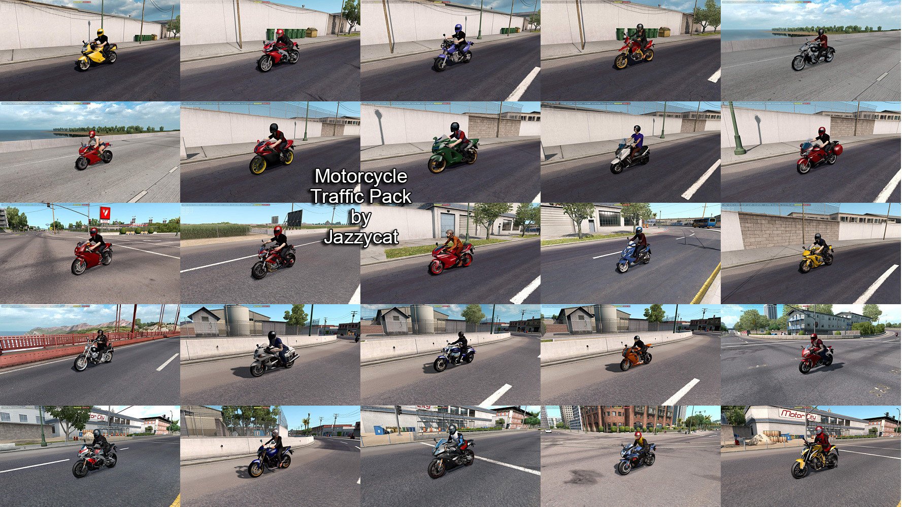 Всего добавляет в трафик 68 мотоциклов Обновление для версии 1.57 Автор мода: Jazzycat |