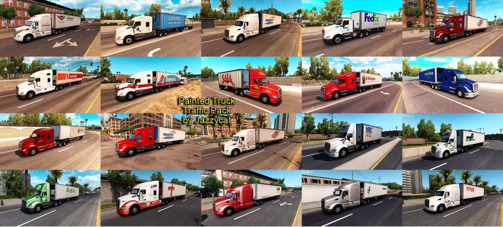 МОД ОКРАШЕННЫЙ ГРУЗОВИК TRAFFIC PACK ОТ JAZZYCAT ВЕРСИЯ 1.8 для American Truck Simulator (v1.34.x)
