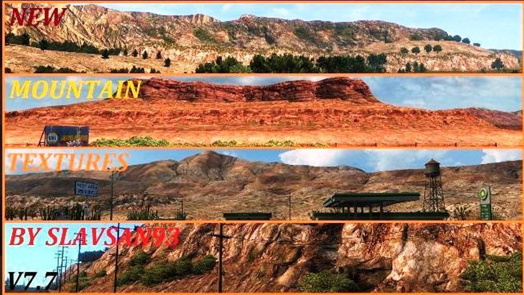 Этот мод заменяет текстуры моделей гор, которые используются в большинстве карт игры для более реалистичного вида Если вам нравится снимать интересные снимки и хотите взглянуть на мир ATS по другому, то этот мод для вас! От гор и пустынь в Калифорнии до Большого Каньона в Аризоне, и красные скалы на любых картах для более реалистичного и разнообразного вида — Большие изменения во многих текстурах. Как правило, сейчас все выглядит более реалистично. Совместим с всеми картами (ставить выше) Тест на версиях игры: 1.28.х — 1.34х Установка: Просто скопировать архив в папку mod и подключить в мод менеджере. Скриншоты для этого мода были сняты без графических модов, яркость установлена на 40%, а цветовая коррекция выключена. Наряду с двумя другими модами: Улучшенная растительность и Реалистичные дороги. Версия 7.7 для American Truck Simulator (v1.28.x — 1.34.x): — Несколько новых текстур для ландшафта Автор мода: slavsan93 |