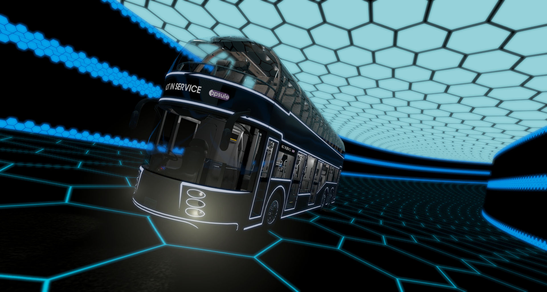 Двухэтажный автобус в форме капсулы для BeamNG.drive. Поставляется с левосторонним приводом (LHD) и правосторонним приводом (RHD).