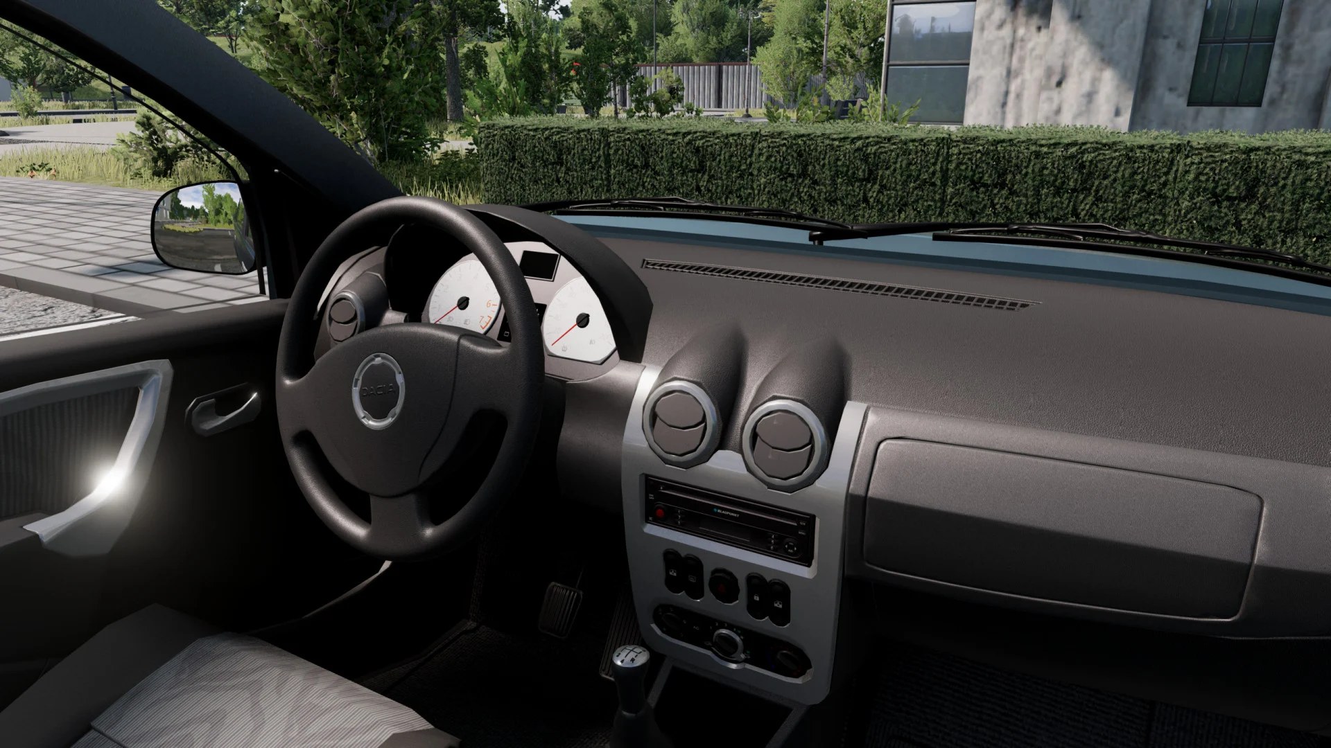 - Анимированная приборная панель, педали, рычаг передач;