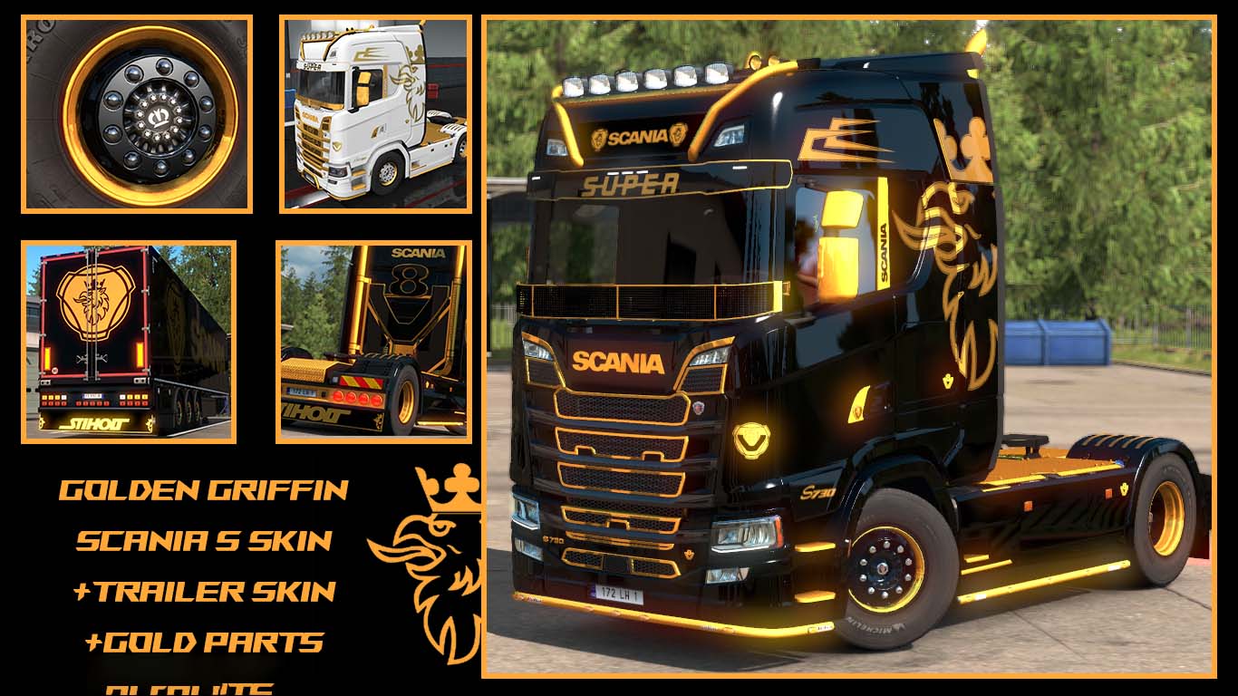 МОД Golden Griffin Scania S parts and Skins ДЛЯ EURO TRUCK SIMULATOR 2