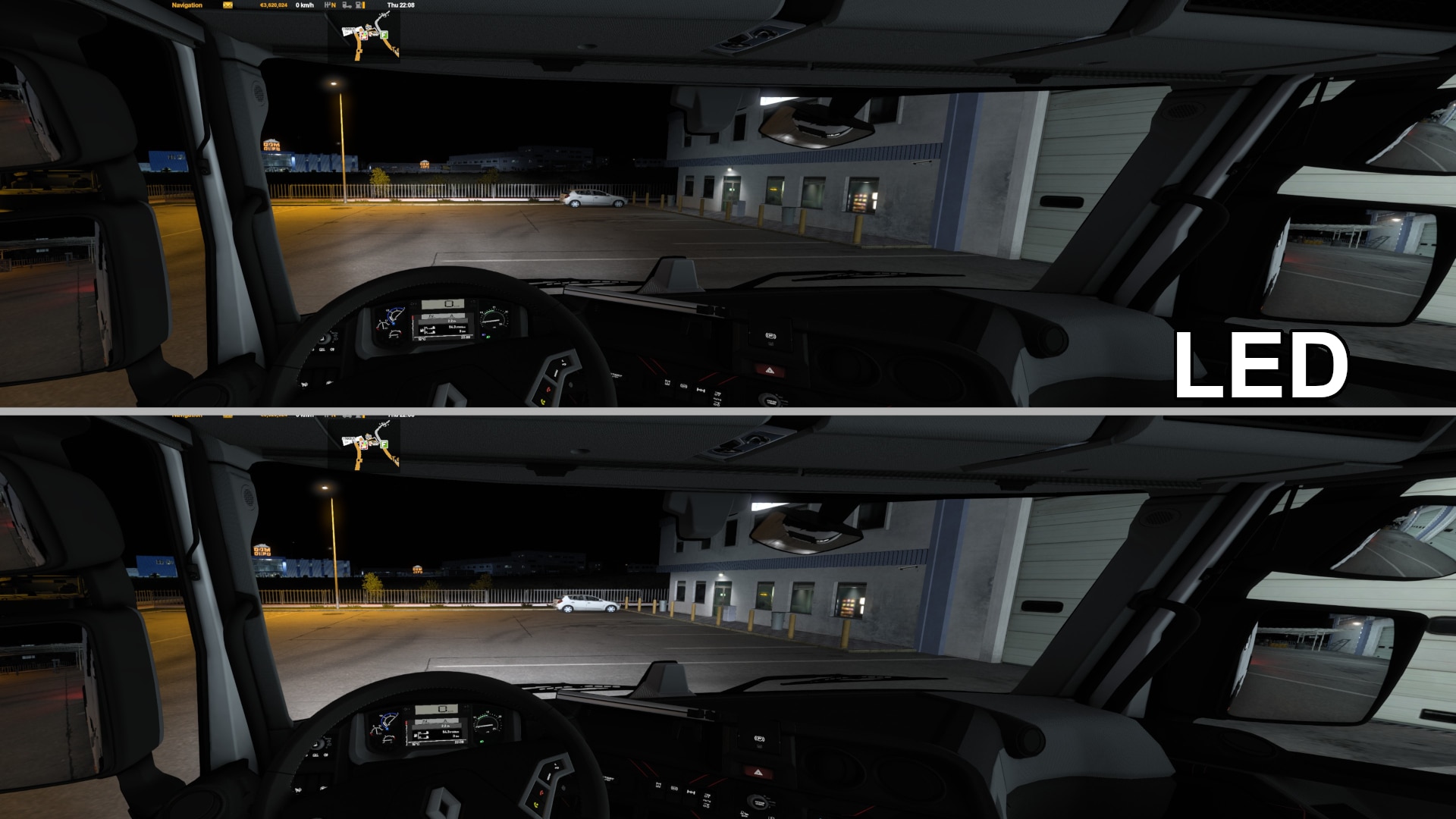 Добавлен выбор галогенных или светодиодных / ксеноновых фар для грузовиков SCS; Обновление для патча 1.58 Автор мода: Eddie Yantz |