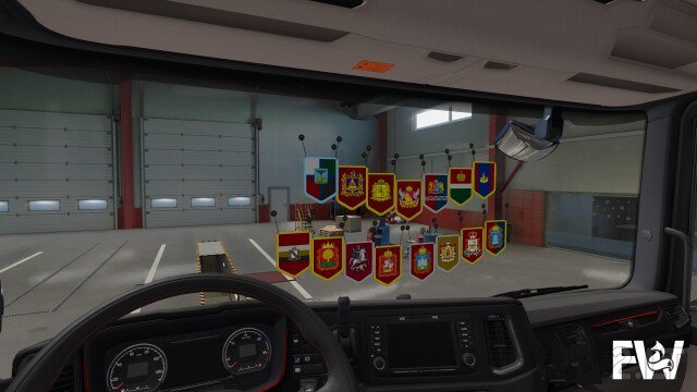 Пак вымпелов регионов центрального федерального округа России (Белгородская область, Брянская область, Владимирская область, Воронежская область, Ивановская область, Калужская область, Костромская область, Курская область, Липецкая область, Московская область, Орловская область, Рязанская область, Смоленская область, Тамбовская область, Тверская область, Тульская область, Ярославская область, г.Москва). Автономные (ничего не заменяют), но требуется наличие DLC Cabin Accessories! Авторы: - модель: SCS Software Автор мода: Mr.Fox |