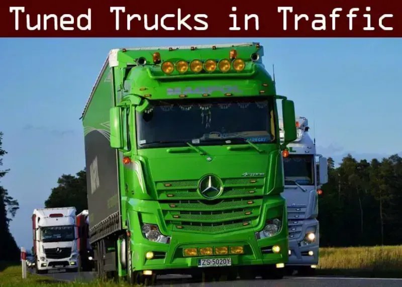 Пак добавляет в трафик тюнингованные грузовики. Работает на любых картах. Версия 3.7 - добавлен тюнингованный Mercedes-Benz Actros 2019 Автор мода: TrafficManiac |