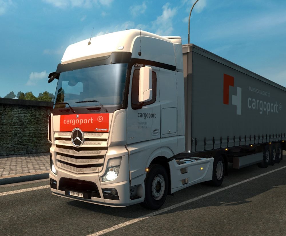 Мод Cargoport Skin Mercedes MP3, MP4 + Shmitz Trailer Skin v 1.0 для EURO TRUCK SIMULATOR 2
