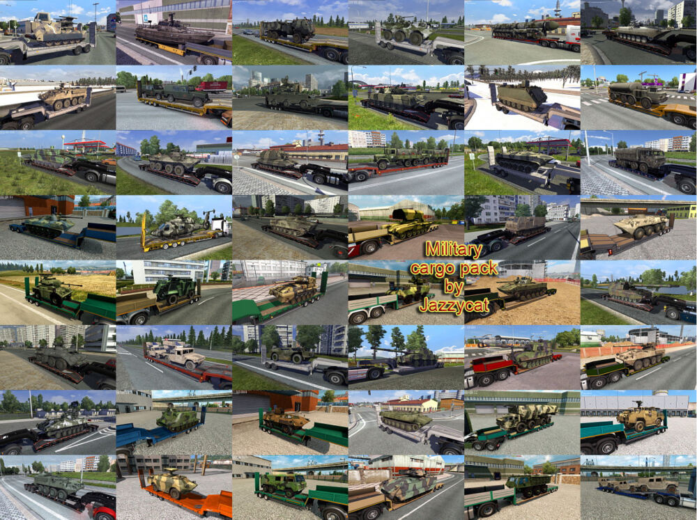 215 новых грузов (военная техника) Все прописано отдельно, ничего не заменяет Обновление для патча 1.58 Автор мода: Jazzycat |