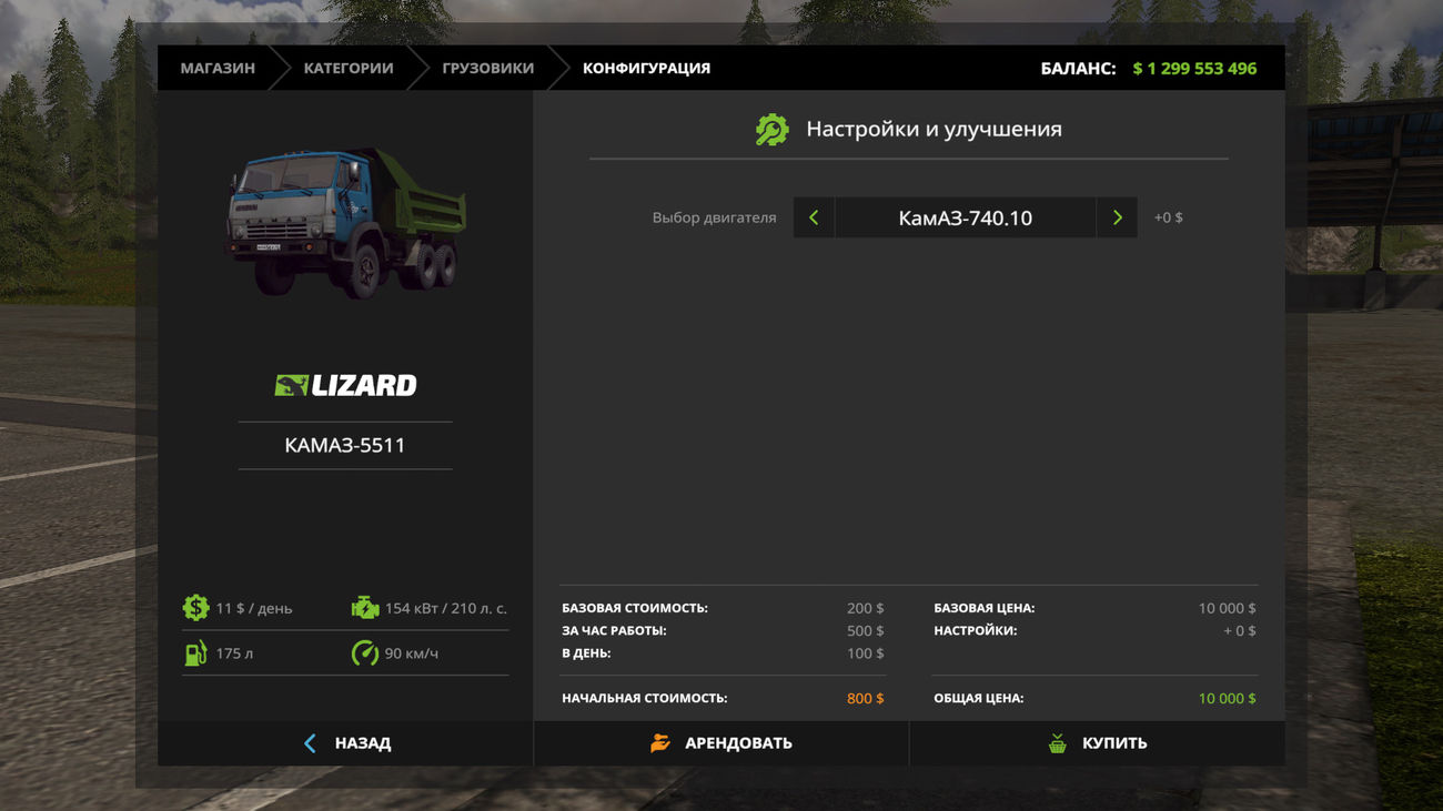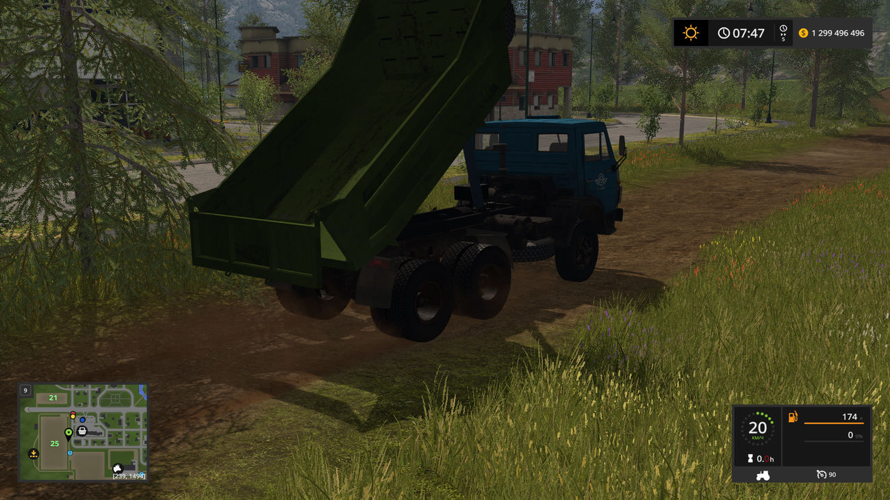 Подвеска оживлена, физика вождения отличная. Выбор двигателя из двух вариантов (мощность 210 л/с). На выбор кузов из двух, и третий силосный (на ходу меняется). Топливный бак 175 литров солярки. Рабочие приборы и светотехника. Максимальная скорость 90 км/ч. Зеркала отражают мир. Автор мода: Elena |