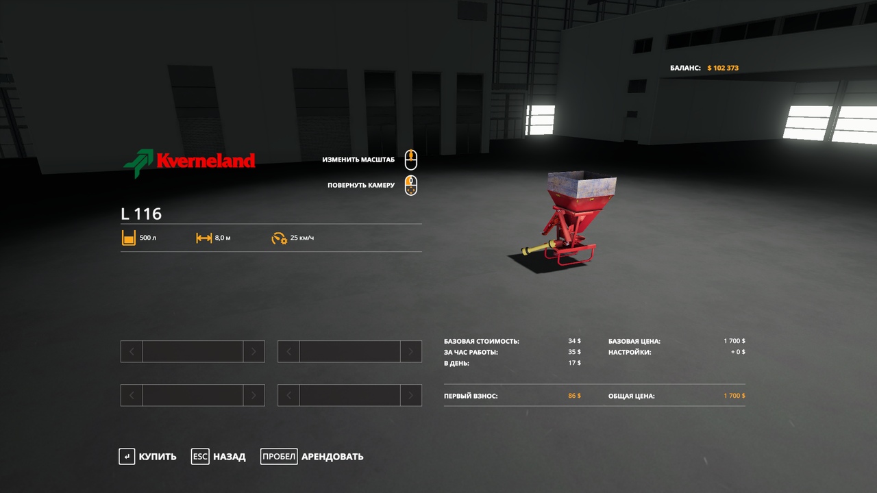 Рабочая ширина 8 метров, цена 1 700, объём удобрения 500 литров. Автор мода: ANDREI1994 / kamazgt |