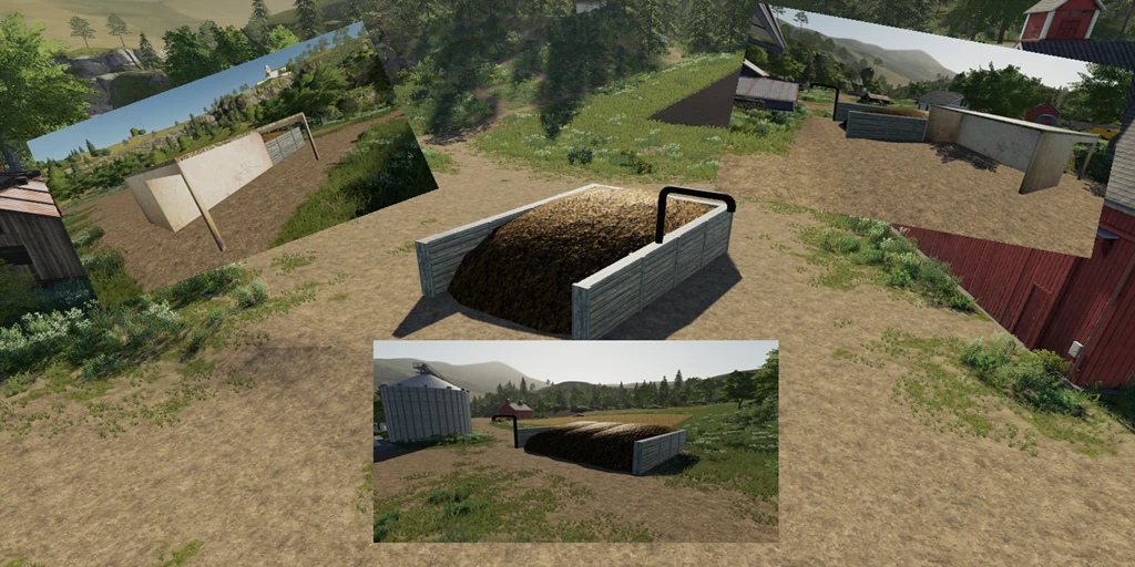 Размещение 3-х бункеров для навоза. Есть 3 разных навозных бункера. Навозный бункер: 300000 литров, 6 метров. Навозный бункер: 600 000 литров, 6 метров и с укрытием. Навозный бункер: 900 000 литров, 12 метров.