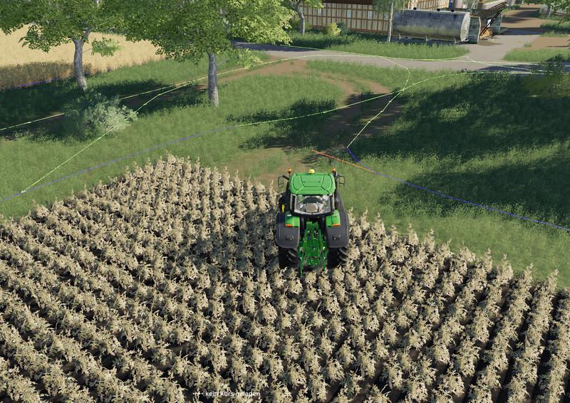 Однако в используемой мной версии AD (по состоянию на 07.07.2019) настройки в настройке AD для «полевого выхода» работают только для Abtanker of Dreschern. Вагоны-погрузчики и удобрения / сеялки всегда хотят покинуть поле через следующую возможную путевую точку для опорожнения или заправки, что, конечно, часто приводит к столкновениям с препятствиями. Поэтому я снабдил все поля дополнительными цепями, которые ведут водителей при выходе из полей к выходам без столкновений. |
