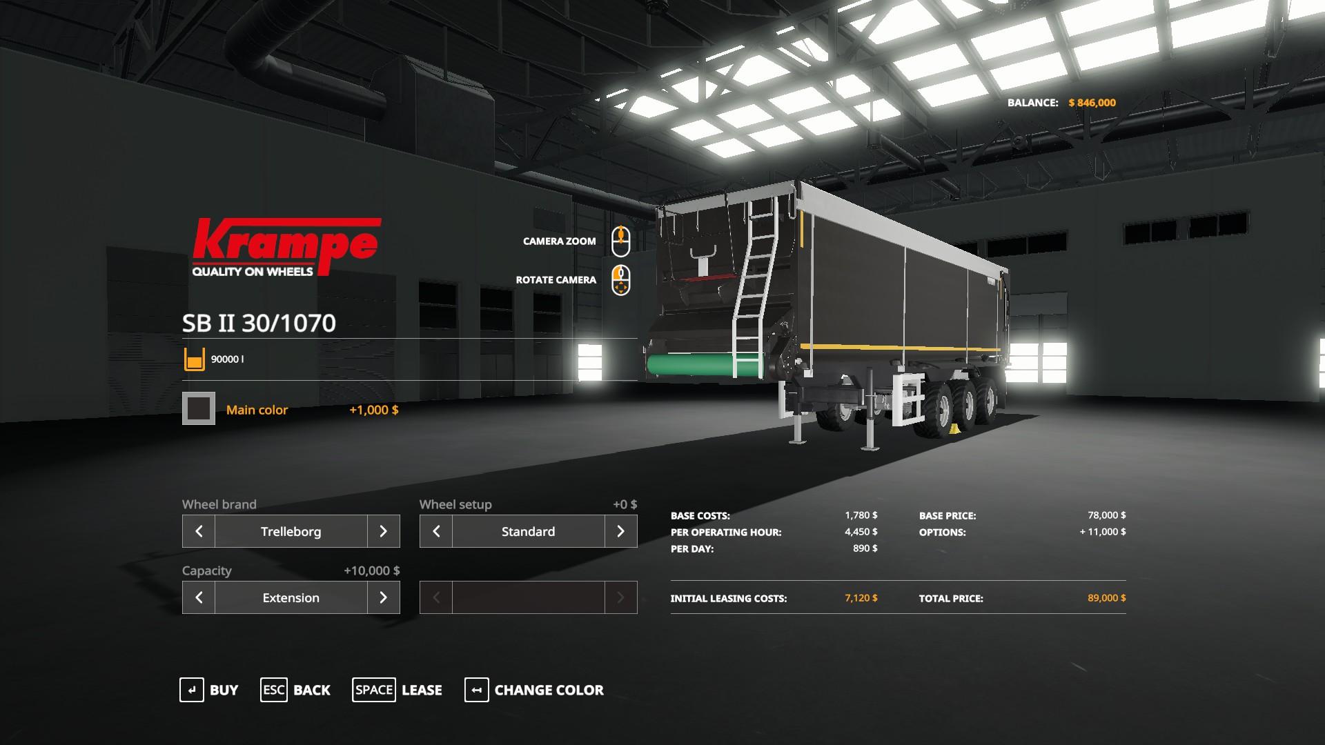 Слова автора доработки: Я добавил прицепное устройство сзади прицепа, чтобы теперь можно было тянуть за собой несколько прицепов с помощью тележки. Это будет тащить все, что в игре будет тащить, поскольку я оставил это как большую часть. Емкость была увеличена до 60 000 л с дополнительным расширением, которое увеличит ее до 90 000 л. Теперь вы также можете выбрать свой собственный цвет, если вам не нравится Krampe Red. Идея пришла от той, что я использовал в FS17, которую я так любил. Я дважды проверил как одиночные, так и MP и не получил никаких ошибок.