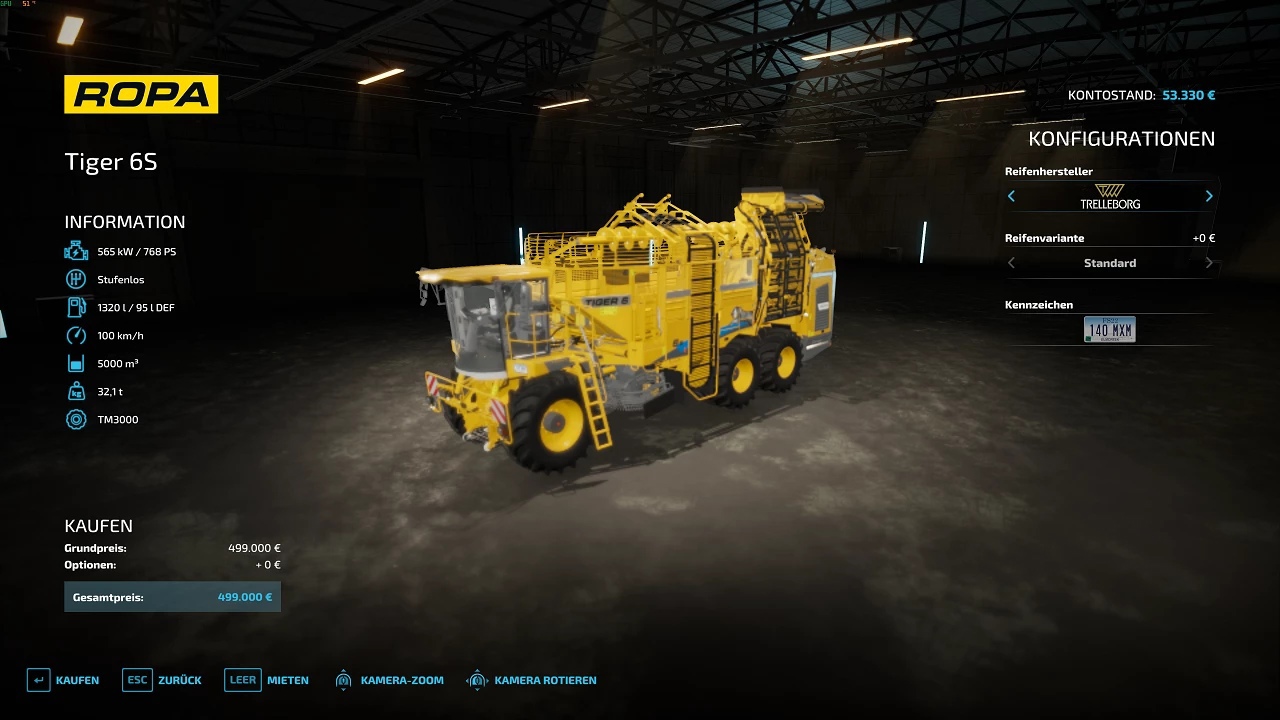 Ропа Тигр 6S -двигатель оптимизирован -скорость 100км/ч -fillTypes сахарная свекла – картофель -вместимость 5000000 -пустая скорость 500000