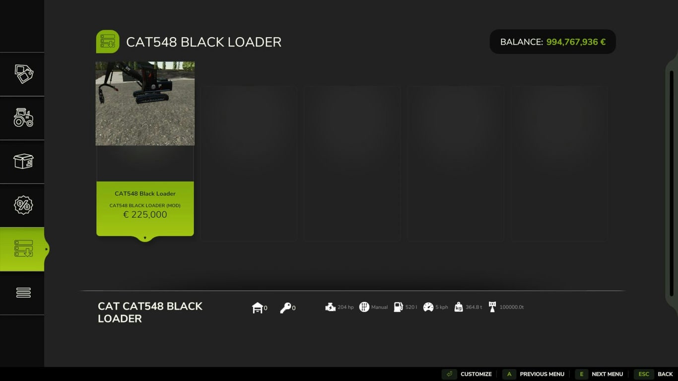 Мод CAT 548LL Black FS25 v1.0.0.0 (1.15.x) ДЛЯ FARMING SIMULATOR 2025