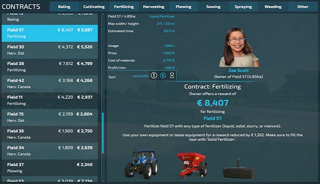 «Должен ли я взять эти три миссии по внесению удобрений или, скорее, контракт на уборку картофеля на 2,3 га?» «Сколько жидкого удобрения мне понадобится для этой работы?» Если вы когда-нибудь задавали себе подобные вопросы, этот мод поможет найти ответы. Максимальное количество контрактов и сумма, генерируемая за цикл, автоматически подстраиваются под количество полей на карте. - Вы можете сразу сгенерировать новые контракты с помощью кнопки «Новые контракты» или удалить их все с помощью кнопки «Очистить контракты». С помощью кнопки «Подробнее» вы можете включить/выключить отображение дополнительной информации о договоре. Например, смета расходов на использование материалов в качестве удобрений, гербицидов или семян. Для контрактов на сбор урожая и тюков он показывает минимальную сумму, которую нужно доставить, и сумму, которую вы можете сохранить (и продать). Исходя из этого, он рассчитывает общую стоимость прибыли по контракту, т. е. вознаграждение за вычетом затрат по контрактам на внесение удобрений/опрыскивание/посев и вознаграждение плюс стоимость сохраненного урожая по контрактам на сбор/упаковку. Он даже оценивает время, которое вам, вероятно, потребуется для полного завершения работы, принимая во внимание скорость работы и рабочую ширину соответствующих лизинговых транспортных средств/инструментов, которые предлагаются по контракту. !Заявление об отказе от ответственности: все значения, показанные в подробном отображении, являются ОЦЕНОЧНЫМИ. Вы не должны брать их абсолютно, а скорее как указание на то, какие контракты предпочесть среди других. Мод отслеживает количество выполненных вами контрактов для каждого из NPC-фермеров (количество выполненных заданий отображается под изображением фермера, если «Подробности» включены). Если вы включите дополнительный режим скидок или параметры жесткого режима (на странице настроек модов), количество выполненных заданий повлияет на игровой процесс. Автор мода: Mmtrx |
