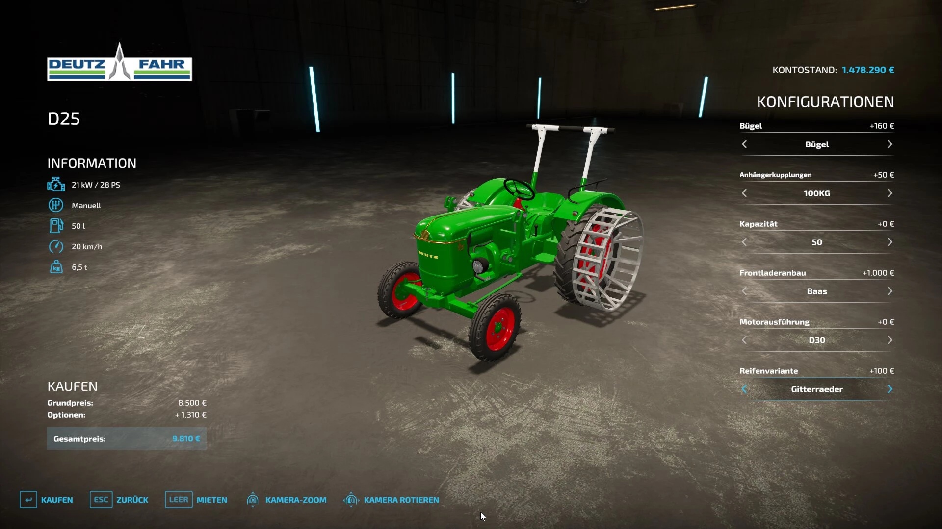 Это трактор Deutz d25 с гидравликой для FS22. Конфигурации: - Конфигурация двигателя - конфигурация шин - Конфигурация фронтального погрузчика - Весовая конфигурация - конфигурация кронштейна - Конфигурация Deco Лог чист. Цена: 8500 € Мощность: 25 л.с. Скорость 20 км/ч