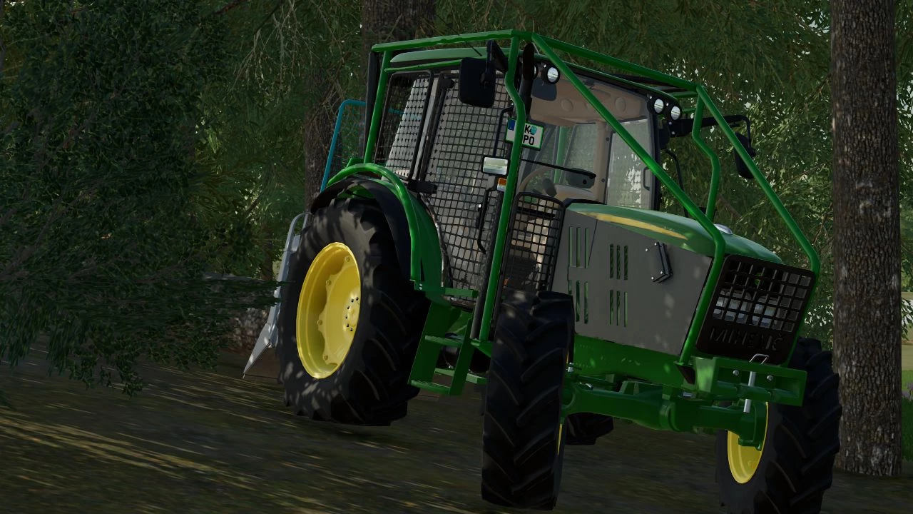 Трактор John Deere 5R Forestry с конфигурацией лесной клетки. Автор мода: Berg Agrar Modding, WOLFex Modding |