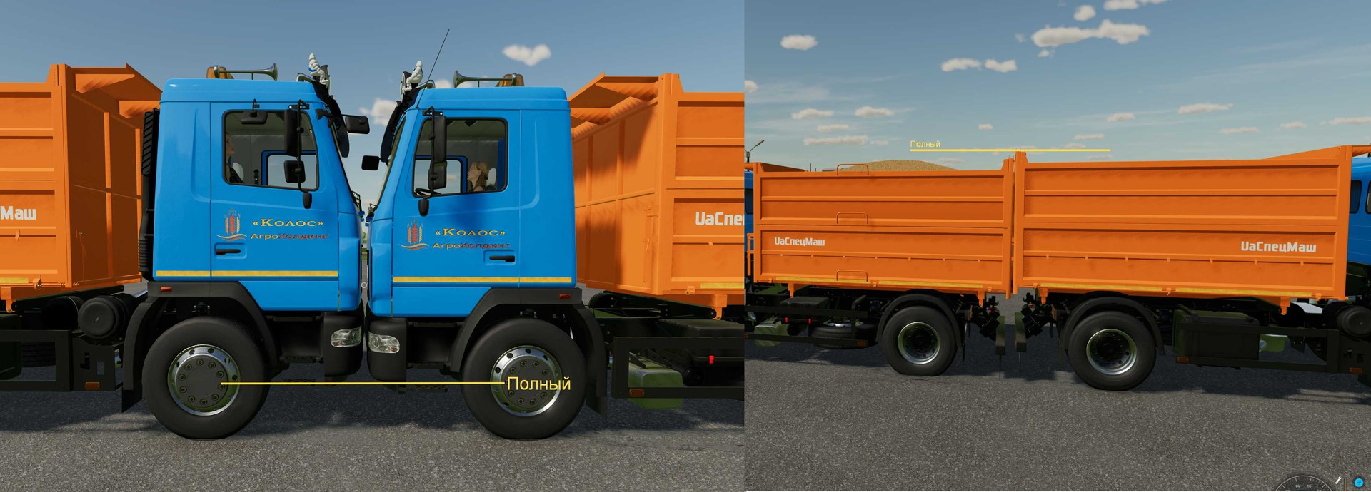 МАЗ-555026 и Прицеп МАЗ-857100 v1.0.0.2 fix. Изменения в версии: 1.0.0.2 fix. - Исправлена нагрузка на оси (теперь передняя ось не проваливается) - Добавлен выбор двигателя на 400 л.с.. Изменения в версии: 1.0.0.2 - МАЗ адаптирован к моду AutoDrive (смещена базовая точка за кабину) - Добавлен родной прицеп от Cheb_mods (ранее он был представлен отдельно) - Добавлена люстра и мигалка на крышу - Добавлены шторки в салон - Добавлены модели девушек-пассажирок - Добавлены анимированные брызговики Изменения в версии:1.0.0.1 С помощью Interactive Control можно: - Открыть окна - Открыть водительскую дверь - Включить свет в салоне - Включить радио - Поднять/опустить солнцезащитную штору - Включить зажигание - Включить дворники - Открыть капот - Опрокинуть кабину - Анимации имеют свои звуки ✅Характеристики мода: МАЗ-555026 - Цена: от 51000 у.е. - Мощность двигателя: 300-400 л.с. - Максимальная скорость: 80 км/ч - Объем кузова: 12500 - 17500 л - Выбор облицовки, логотипов, колпаков, окраски, брызговиков, дизайна Прицеп МАЗ-857100 - Цена: от 15000 у.е. - Объем кузова: 12500 - 17500 л - Выбор колпаков, брызговиков, цвета Авторы оригинального мода: Ceb_Mods Автор интерактивной версии: Вика Одинцова Автор адаптации для Авто Драйв: Stin Автор мода: Cheb_Mods. |