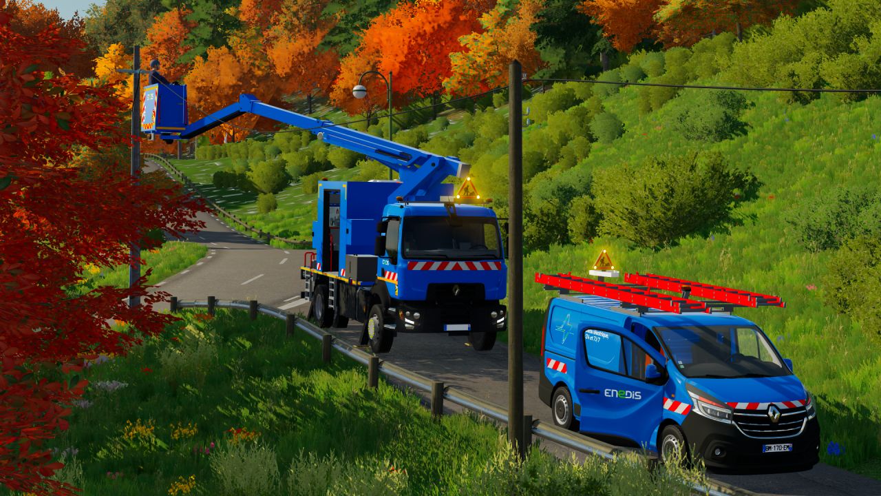 Автовышка Renault D14 PEMP с автомастерской. Для управления автовышкой сначала нужно пересесть в нее (клавиша "X") В версии 1.1.0.0: Автор мода: IEG Modding, Projet Maxtix Nord |