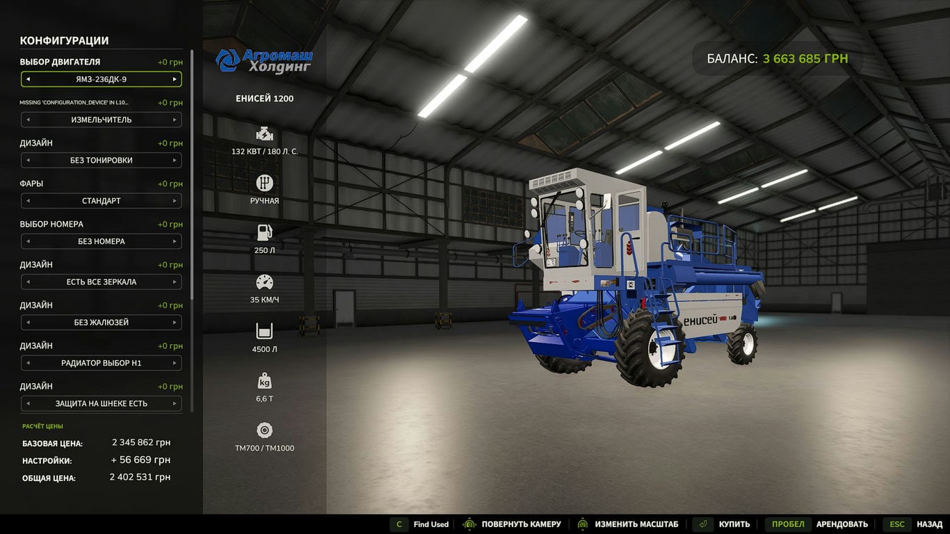 Мод Енисей 1200 1НМ + Жатки FS25 v1.0.0.0 (1.15.x) ДЛЯ FARMING SIMULATOR 2025