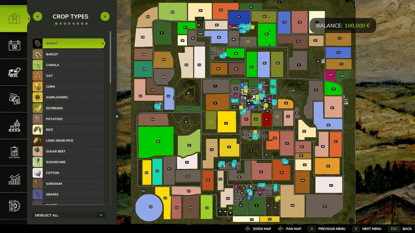 Вас ждет карта 4x с несколькими видами фруктов, стартовой фермой и 6 участками под застройку. Примерно 96 полей и лугов.