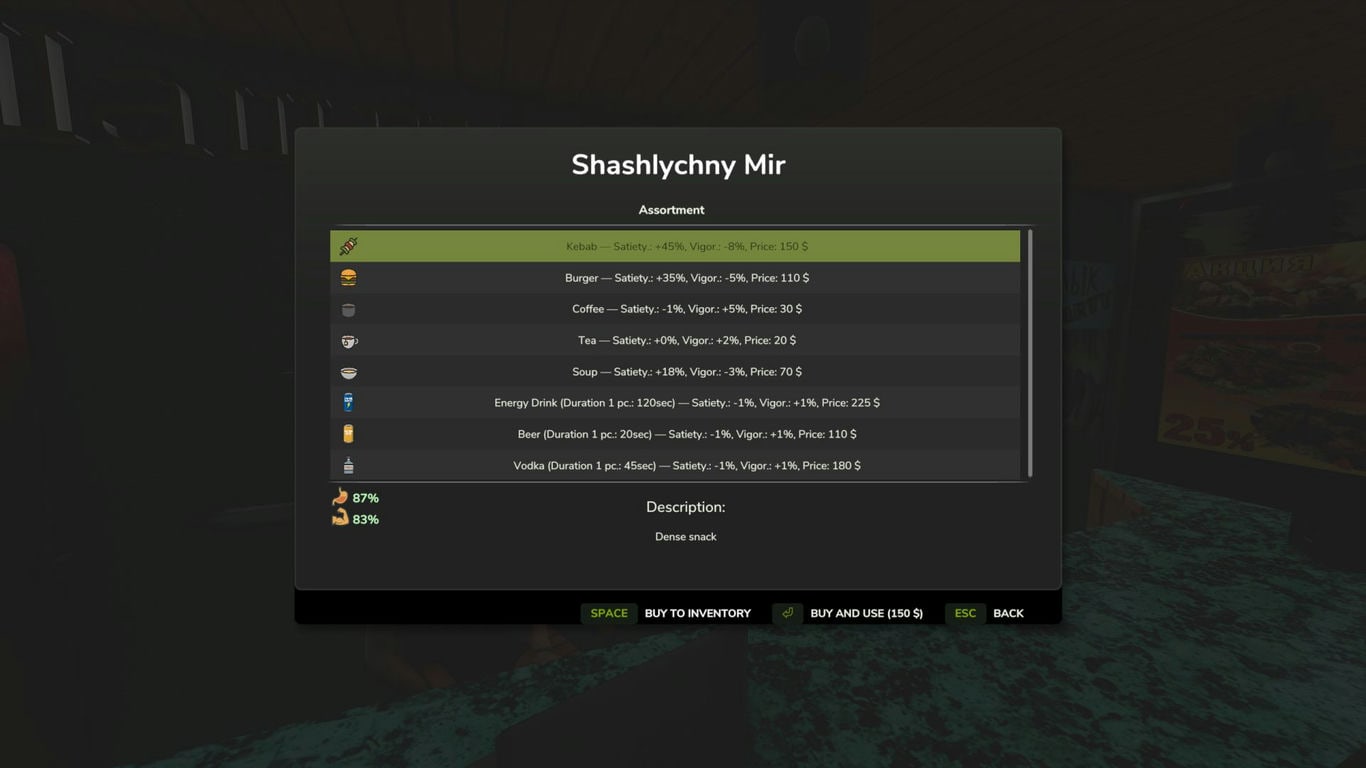 Теперь игроку нужно есть и отдыхать, чтобы поддерживать форму.