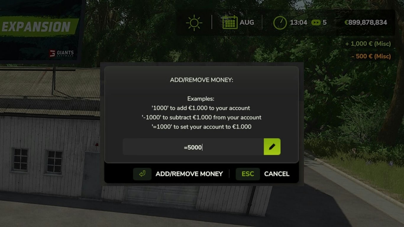 - Добавление/удаление денег на ферму