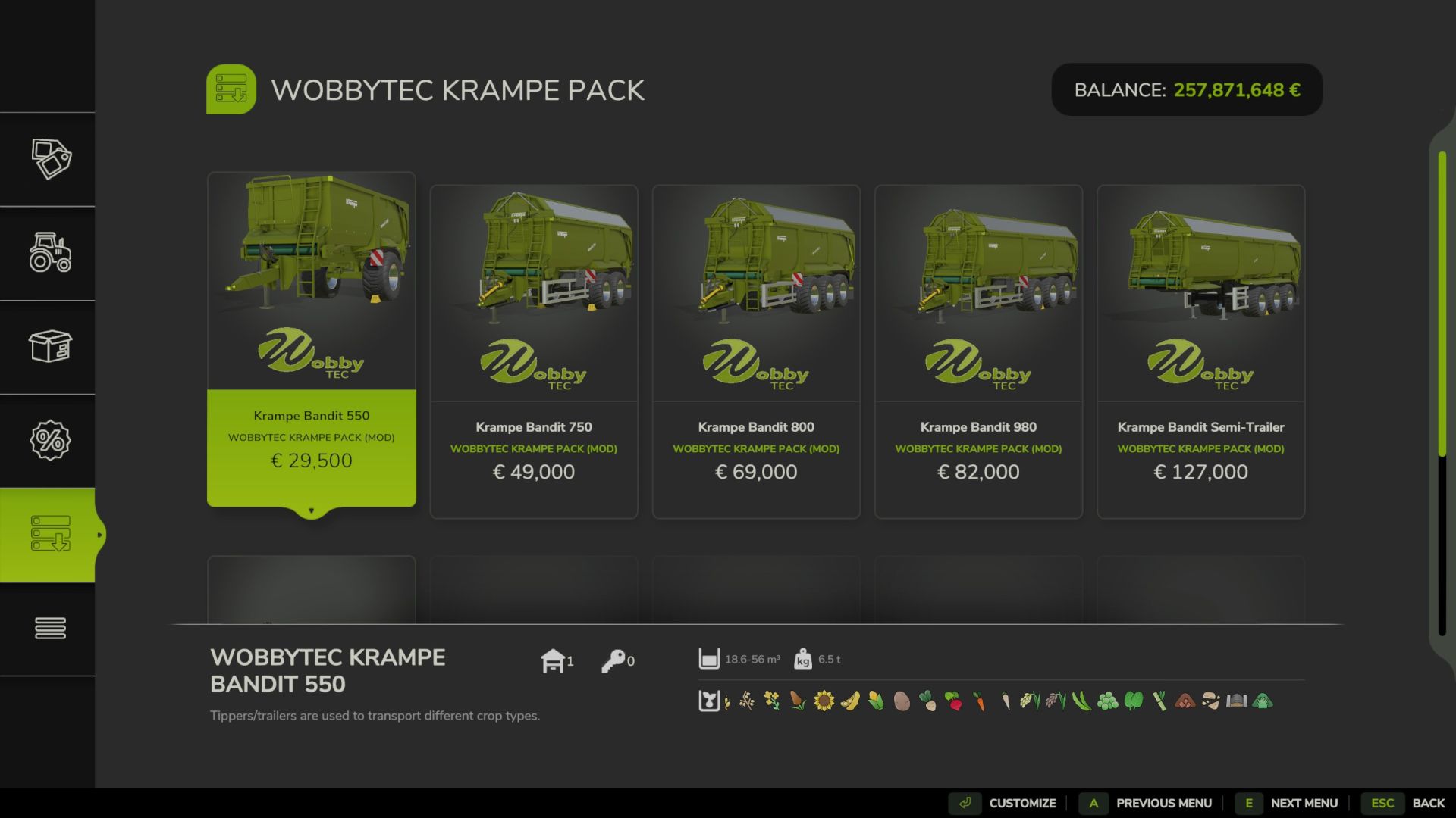 Пак KRAMPE 550, 750, 800, 980 и trailer & Dolly объемом 20к литров с анимированным подвижным полом и автоматической подъемной осью в прицепе, светодиодными динамическими задними фонарями последнего стандарта KRAMPE