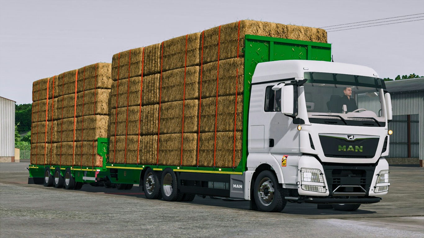 MAN TGX: ваш партнёр для перевозки соломы на большие расстояния. - Цена: 145 000 долларов США Варианты комплектации: Примечание: Этот автомобиль представляет собой модифицированную версию базовой игры с добавлением платформы для перевозки соломы. В версии 2.0.0.0: Автор мода: caleruega modding design |