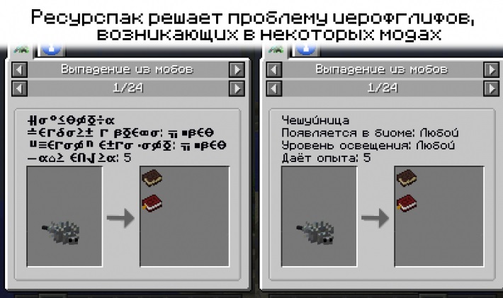 Ресурспак решает проблему возникающих иероглифов в моде Client Fixer, которые появляются в некоторых модах. Шрифты подходят для любой версии майнкрафта. Автор мода: неизвестен |
