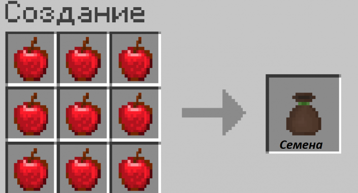 После установки этой модификации, из листвы начнут выпадать новые виды фруктов из которых можно скрафтить фруктовые семена и вырастить свой сад.