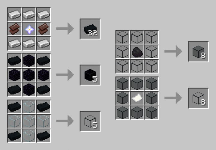 Модификация позволит крафтить особый сплав, с которым можно усиливать обсидиан и блоки стекла. Для изготовления тридцати двух слитков сплава, потребуется шесть слитков железа, два незеритовых лома и звезда нижнего мира. Автор мода: sajeyson |