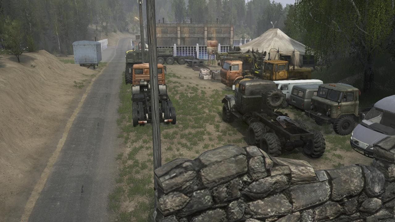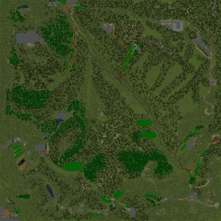 На карте присутствует: 1 закрытый гараж; 2 АЗС; 1 лесоповал (+ точка погрузки); 6 лесопилок; 4 машины на старте; 8 точек разведки. Автор мода: MLC |