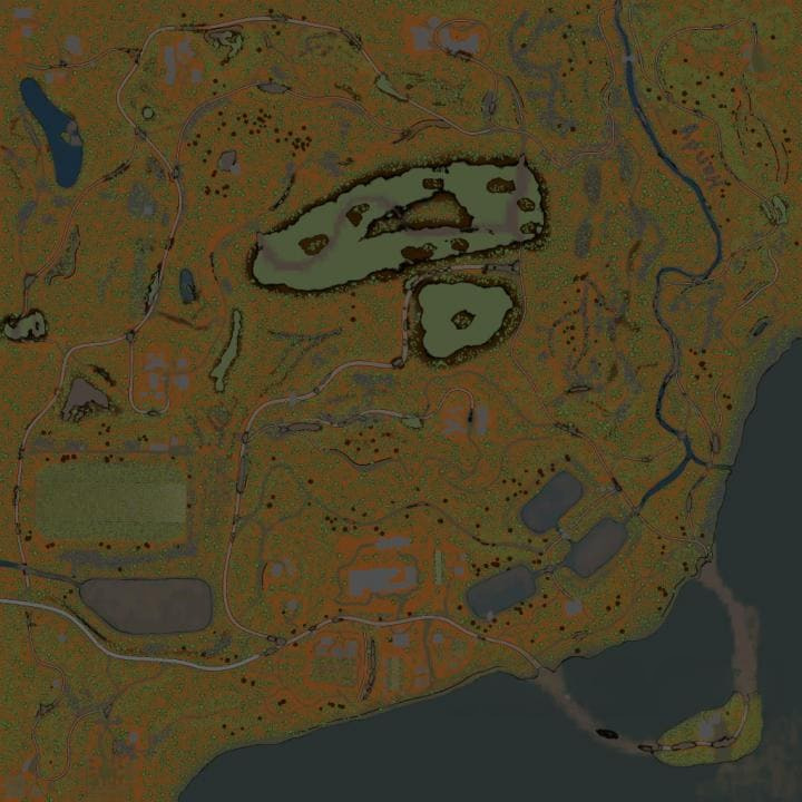 Размер карты: 1х1 км. На карте присутствует: 1 закрытый гараж; 1 АЗС; 6 лесопилок; 2 точки погрузки (+лесоповал); 8 точек разведки; 4 авто на старте. с