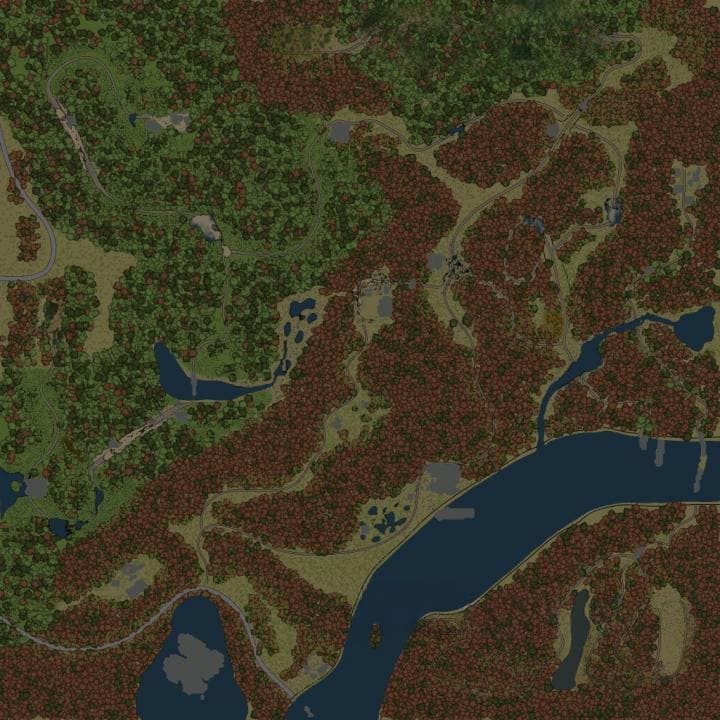 На карте присутствует: 1 закрытый гараж; 5 лесопилок; 1 АЗС; 1 лесоповал (+2 точки ручной погрузки); 11 точек разведки; 3 стартовых слота (заменяемы); самоходный паром; несколько машин техподдержки, которые скрыты на карте. Автор мода: Vladislav |