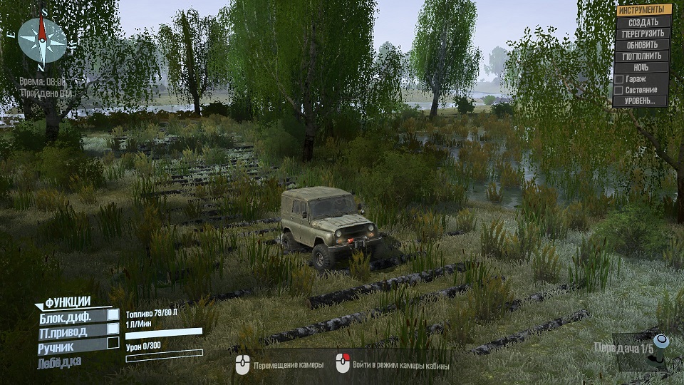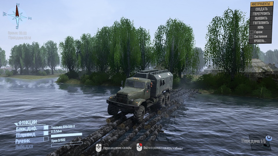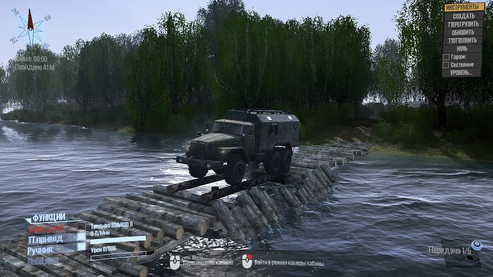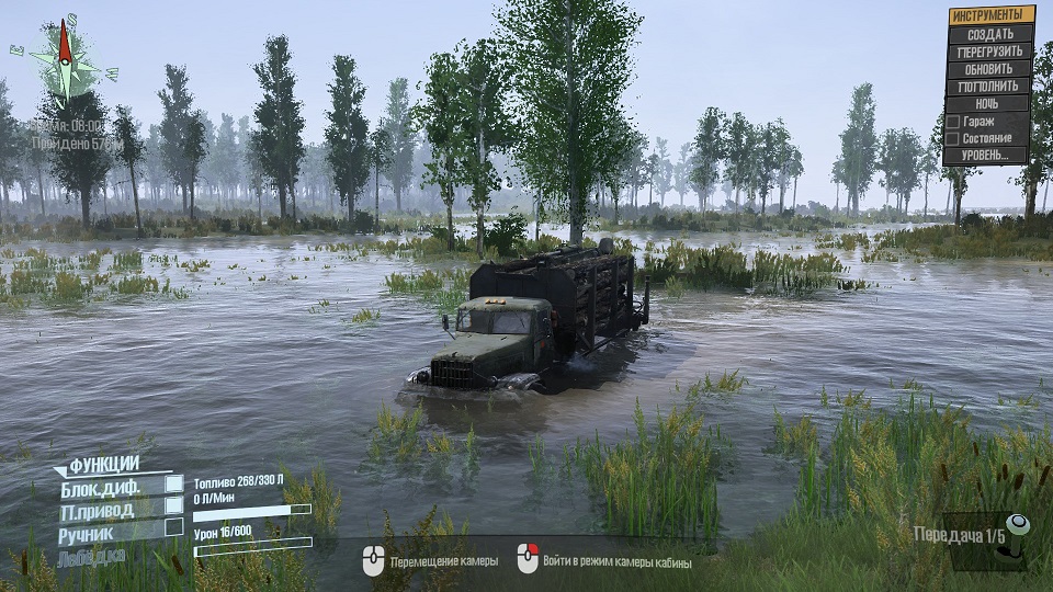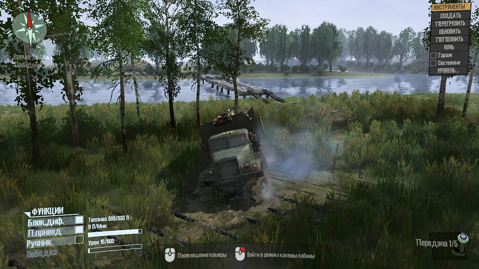 На карте: - 1 гараж (закрыт) - 4 пилорамы - 5 авто на старте - 2 точки погрузки - 1 заправка
