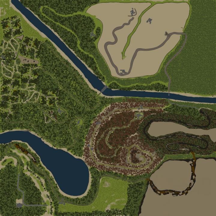 На карте присутствует: 2 закрытых гаража; 2 АЗС; 1 лесоповал (+1 точка погрузки); 6 лесопилок; 9 точек разведки; 3 стартовые авто. Автор мода: Jaksan_63 |