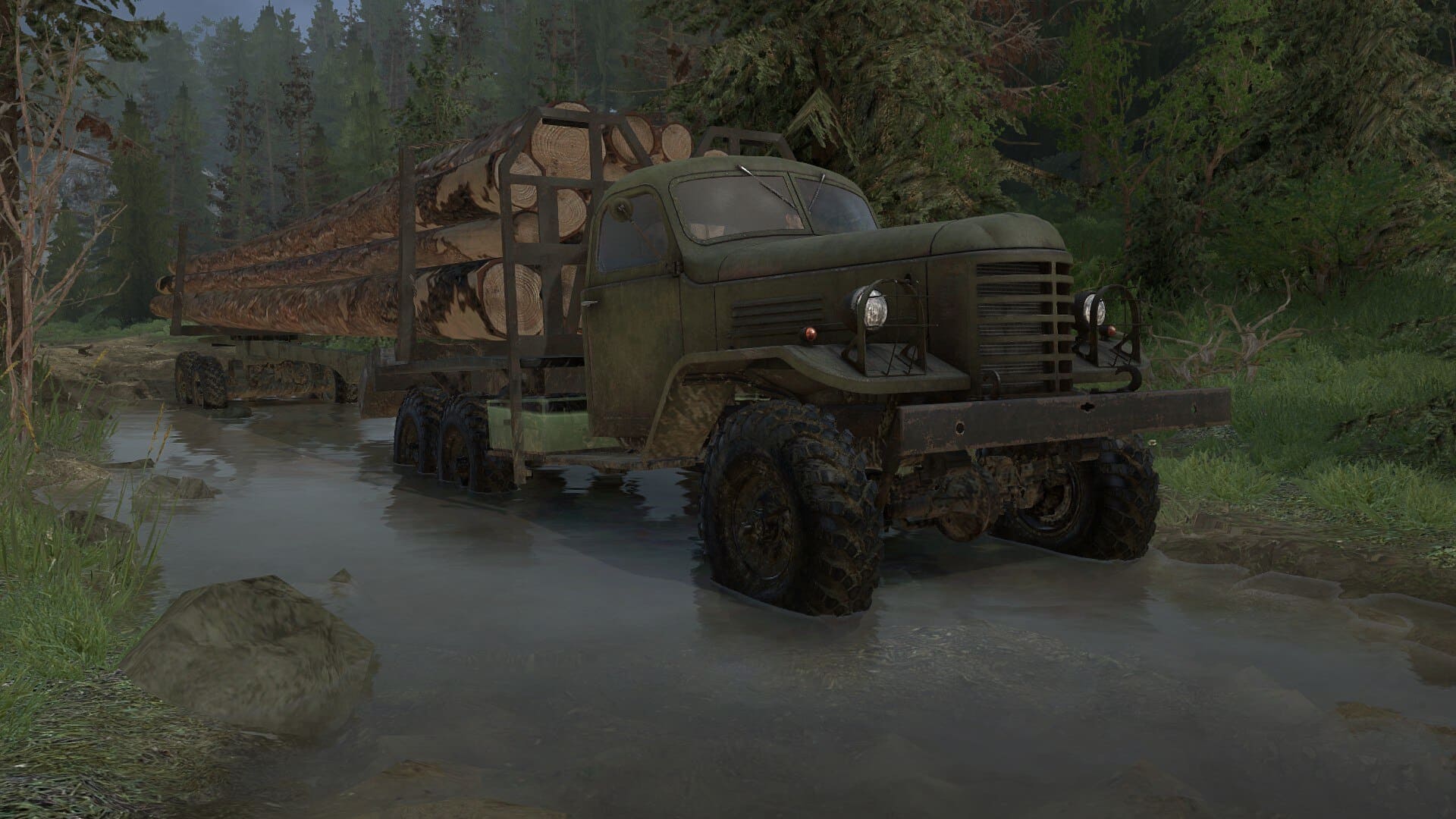 В воде находятся два грузовика — ЗиЛ-157 и его китайский аналог Jiefang CA-30. У каждого из них есть по 4 (для ЗиЛ-157) и 5 (для CA-30) собственных дополнений. Транспортируют они груз в объеме от 3 до 4 очков, проходимость у обоих — средняя. Обе модели были взяты из исходной игры Spintires и доработаны. Автор мода: ryszard |