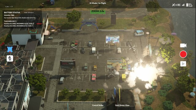 После вызова удара: ЛКМ для перехода в вид с дрона (инфо о гаубицах/снарядах, отмена, осмотр)