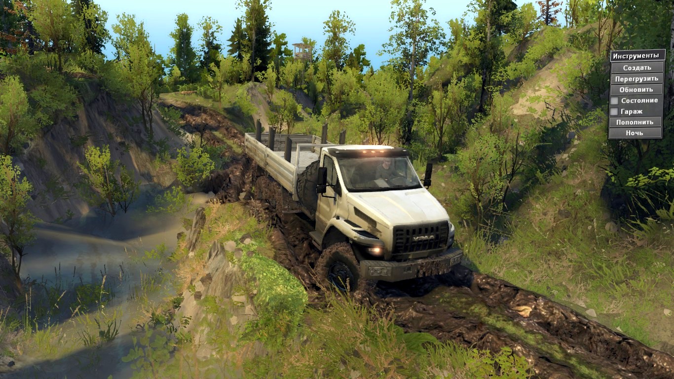 О карте: хардкор конкретный, не сказать что уж много грязи, но ехать капец как тяжело, походу рельеф удался на славу. На дефолте пройти можно, но спина будет в мыле сто пудов. Если взять монстра, то можно не поместиться на дороге и скубануть со склона или не въехать в поворот на серпантине. Короче, нужна какая-то стратегия. 50% купивших карту отписывались, что пришлось начинать заново, так как не подрасчитали силы. В общем, нытьё не принимается, я обо всём предупредил. На карте 4 (10) пилорам, 3 точки погрузки, 4 гаража (закрыты), 1 АЗС, 4 машины на старте, остальные раскиданы по карте. На карте полно машин с уже установленными аддонами для поддержания геймплея, из них 4 на старте. Автор мода: Лобзуков Лёха (ВОСТОК 25RUS) |